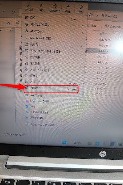 例えば自分で撮った画像の容量を確認するには画像の上にマウスを置いて右クリックして「プロパティ」を開いてみましょう